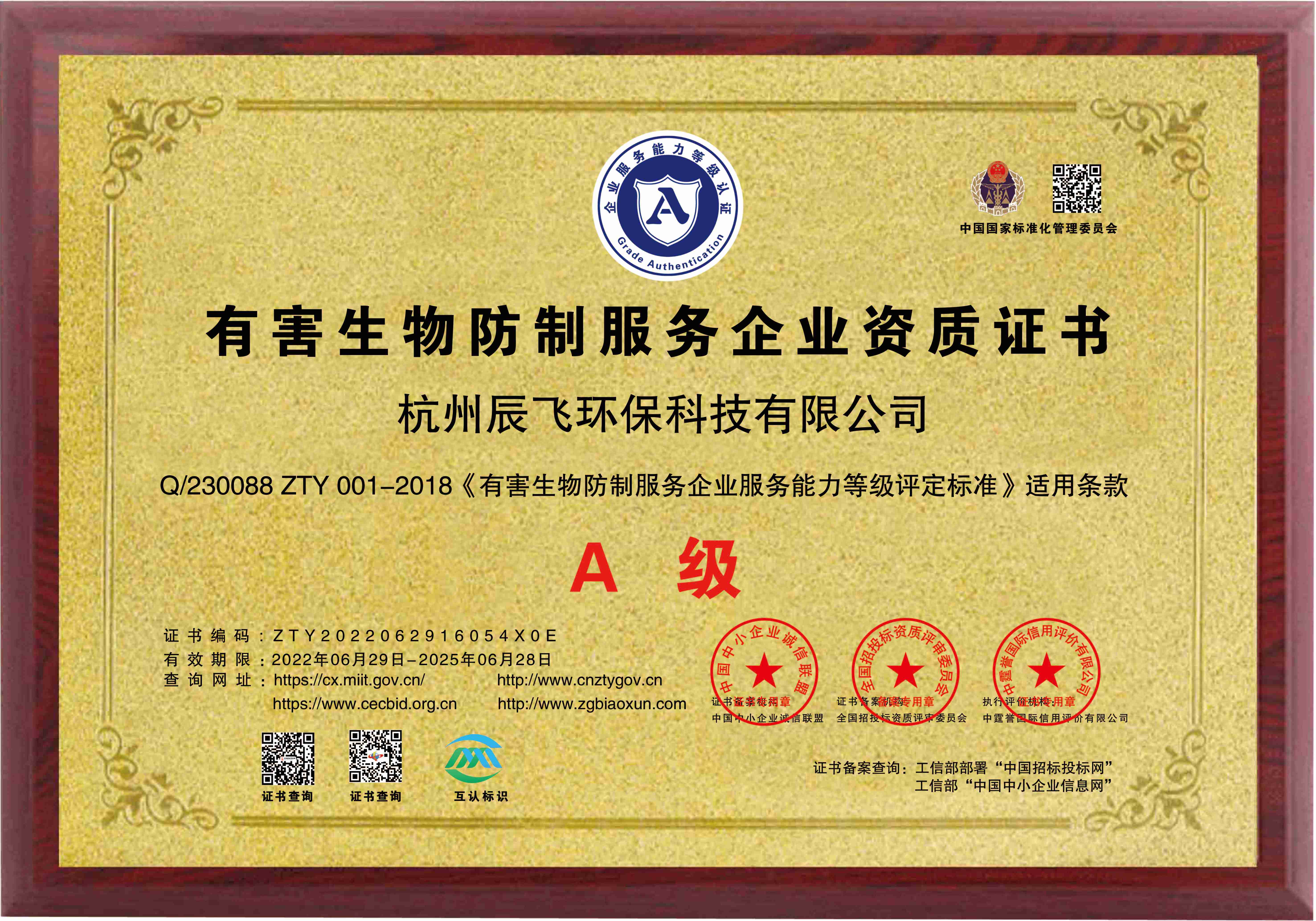 有害生物防制服務(wù)企業(yè)A級(jí)